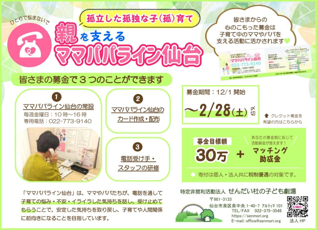 ★「ママパパライン仙台」に寄付(クレジット・銀行振込)